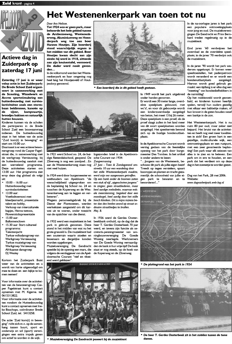Leuk krantenartikel Zuidkrant over het Westenenkerpark